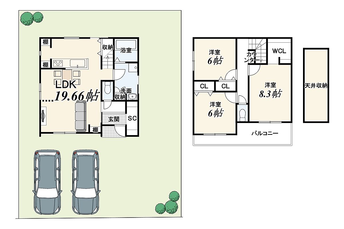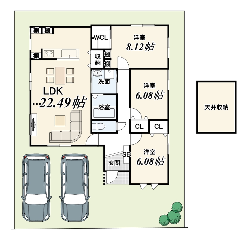 - ※完成予想図やCG合成画像は、門塀・植栽・庭・外観等、実際とは多少異なる場合があります。