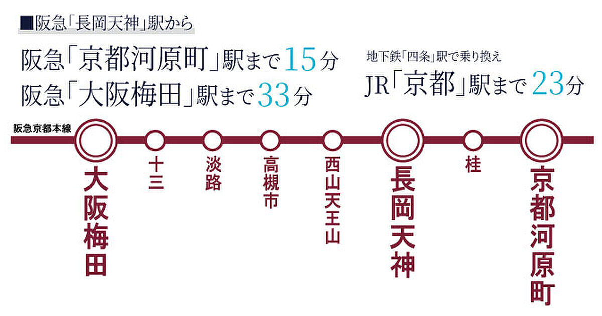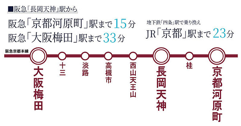 京都河原町までは約15分、大阪梅田へも約30分弱で行くことがで...