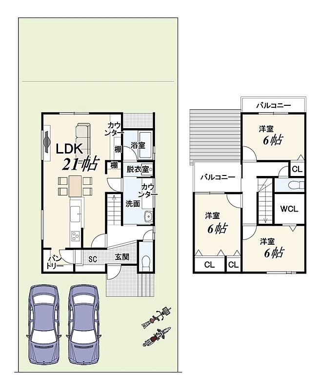 - ※完成予想図やCG合成画像は、門塀・植栽・庭・外観等、実際とは多少異なる場合があります。