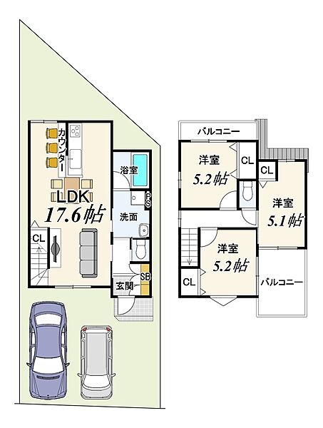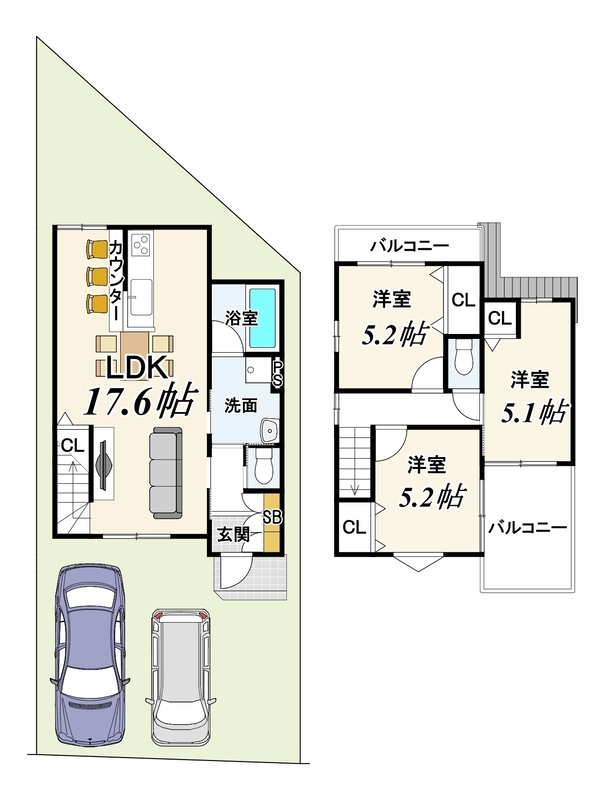 - ※完成予想図やCG合成画像は、門塀・植栽・庭・外観等、実際とは多少異なる場合があります。