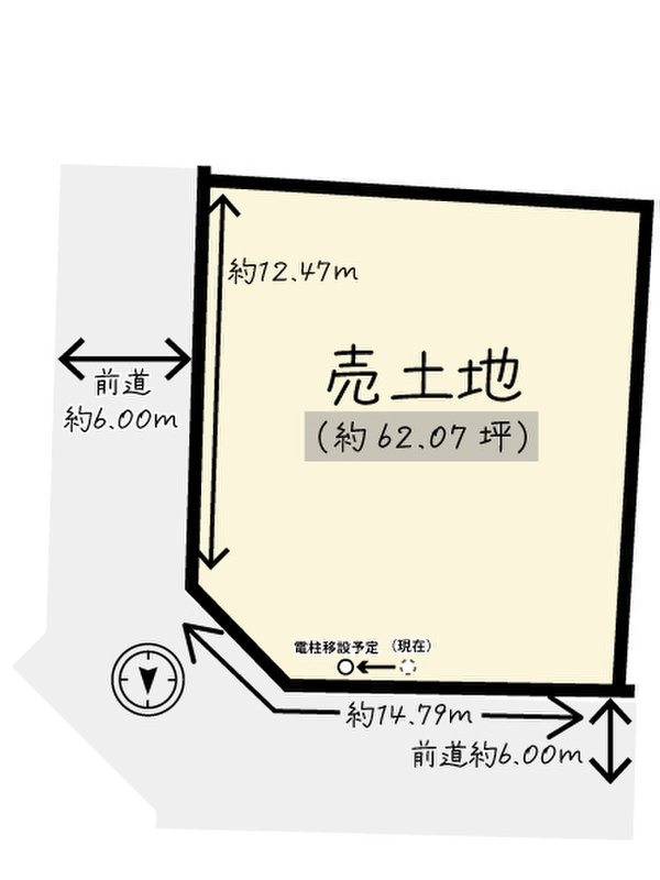 | 駐車場 | 2台 | 道路の幅員 | 北 幅:6m 間口14.79m 東 幅:6m 間口:12.47m |