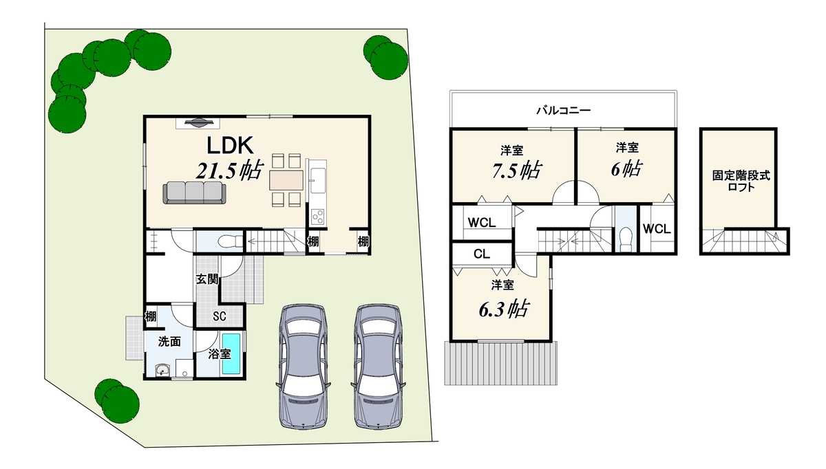 - ※完成予想図やCG合成画像は、門塀・植栽・庭・外観等、実際とは多少異なる場合があります。