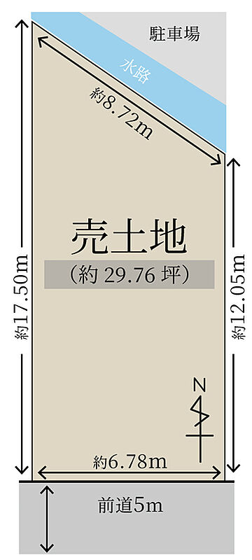 | 駐車場 | 2台 | 道路の幅員 | 南 公道 幅:4m 間口6.78m |