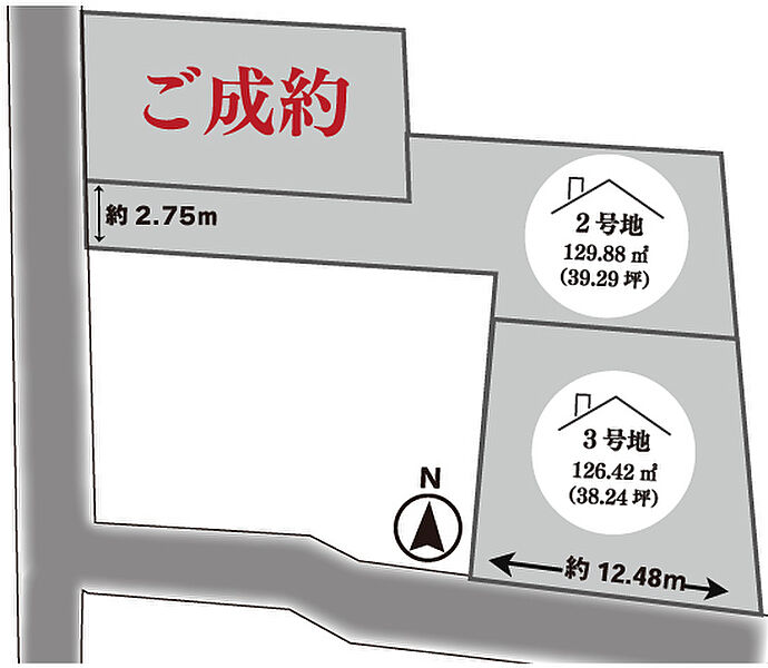 | 建物面積 | - | 土地面積 | 公簿:126.42m2(3号地)~公簿:129.88m2(2号地) |