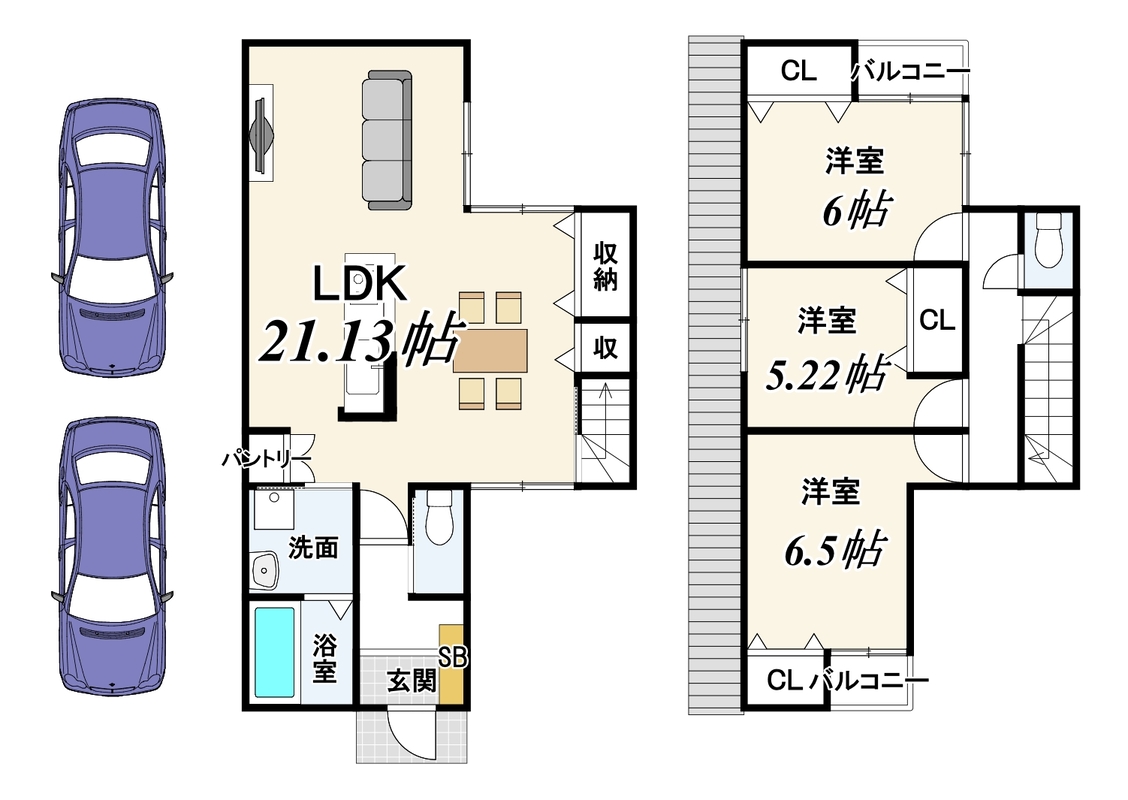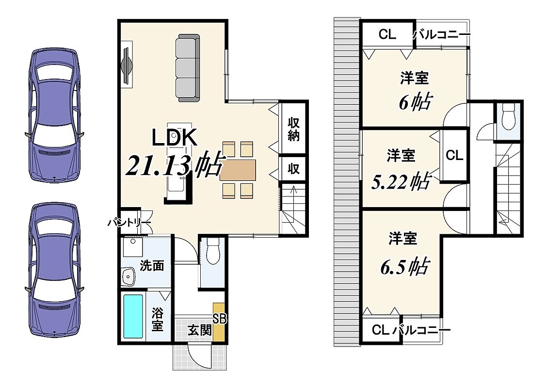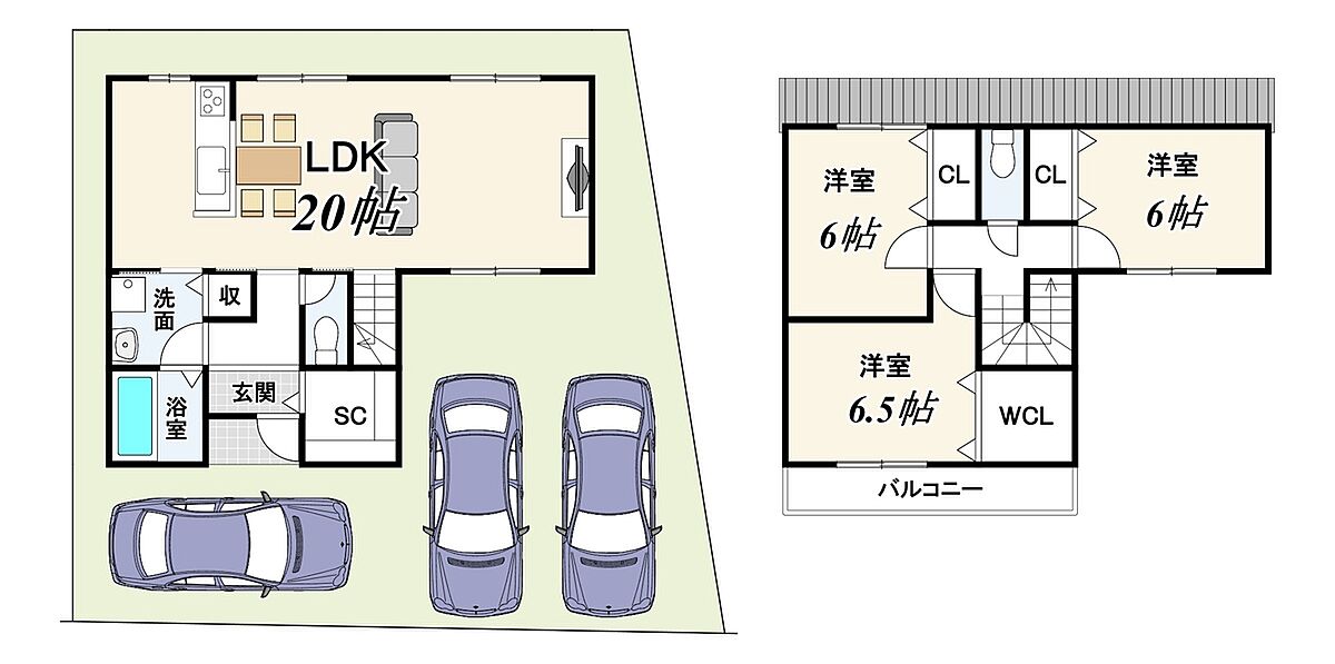 - ※完成予想図やCG合成画像は、門塀・植栽・庭・外観等、実際とは多少異なる場合があります。
