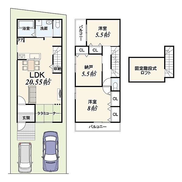 | 建物面積 | - | 土地面積 | 101.32m2(1号地)~103.22m2(2号地) |