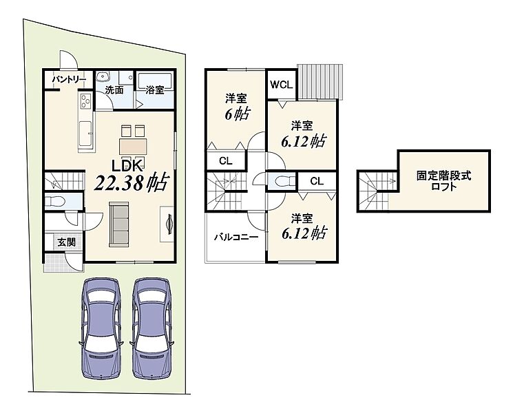 - ※完成予想図やCG合成画像は、門塀・植栽・庭・外観等、実際とは多少異なる場合があります。