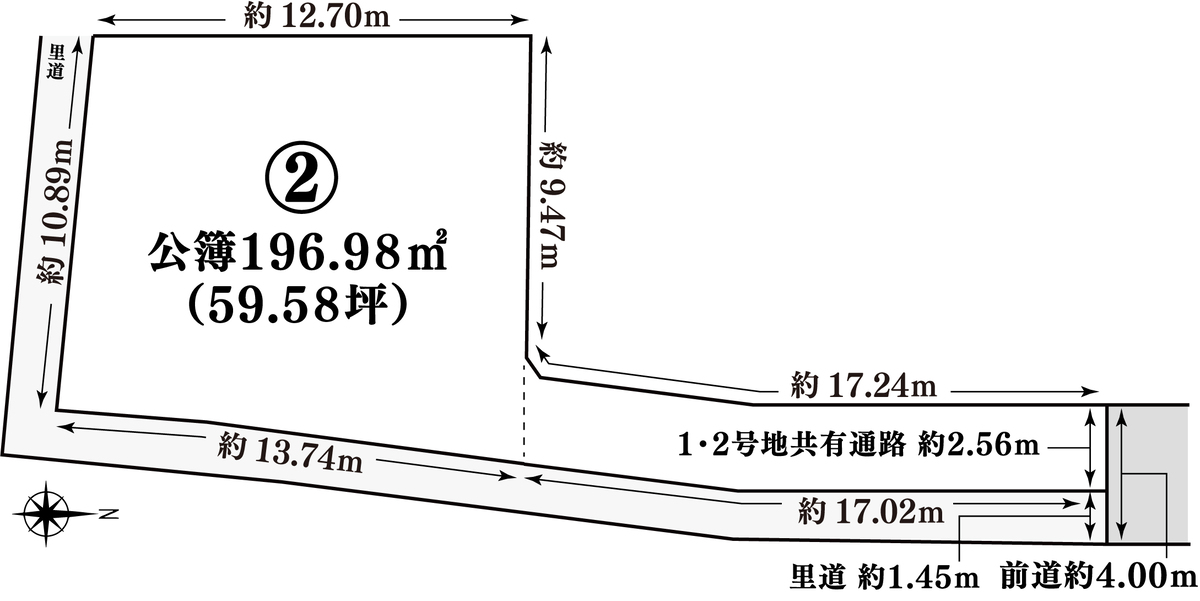 | 建物面積 | - | 土地面積 | 公簿196.98m2(59.58坪) |