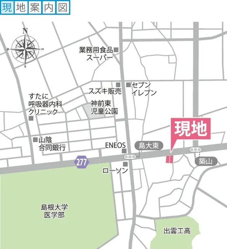 JR出雲市駅まで車で5分、出雲ICが近く大田・雲南・松江の各方面にアクセスがしやすい立地です。