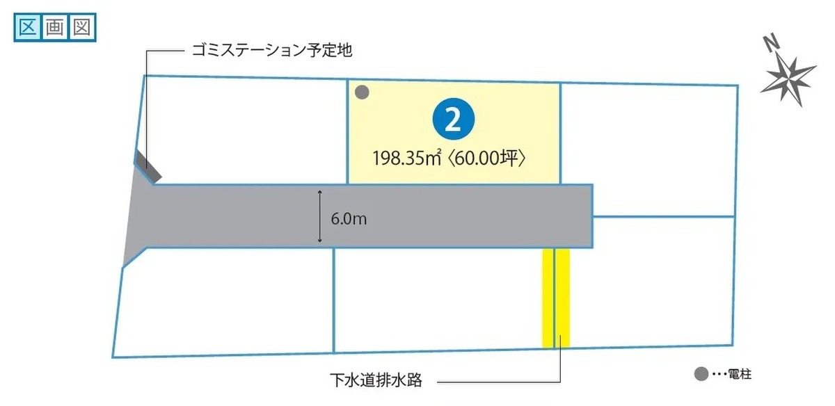 | 駐車場 | - | 道路の幅員 | 南西6.0m(私道)※南西道路は位置指定道路となり6分の1持分となります。 |