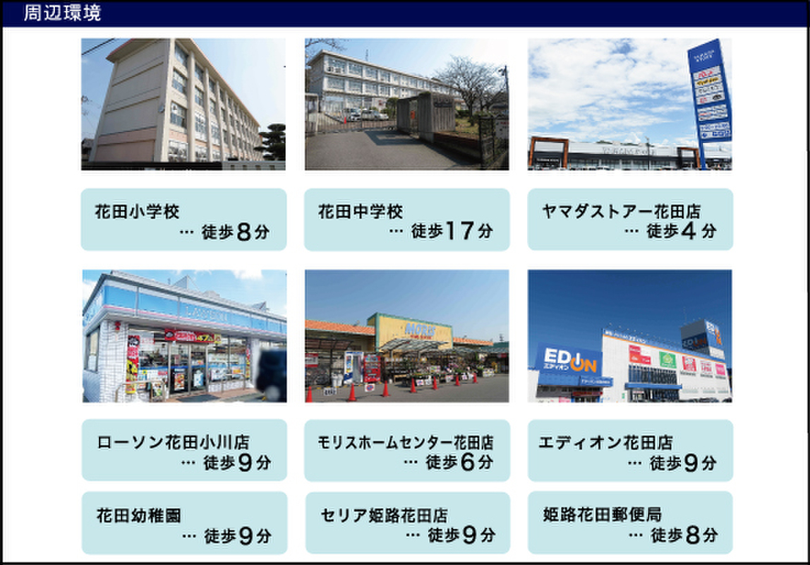- ※物件から周辺のお店・施設までの距離は、利用が想定される道路を通行した場合の距離です。なお、必ずしも最短距離を保証するものではありません。