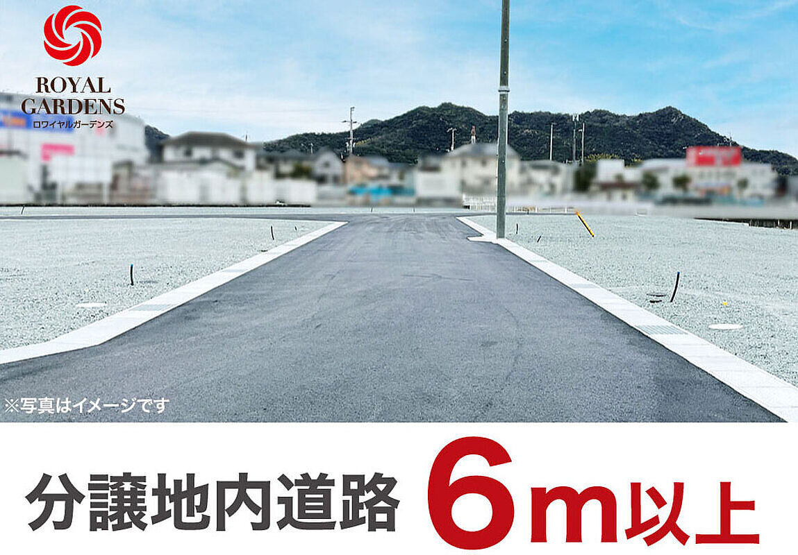 【全29区画の大型分譲地】区画整理されたキレイな街並みになります。分譲地内道路も幅員6.0mと広々!駐車が苦手な方でも安心して頂けます。