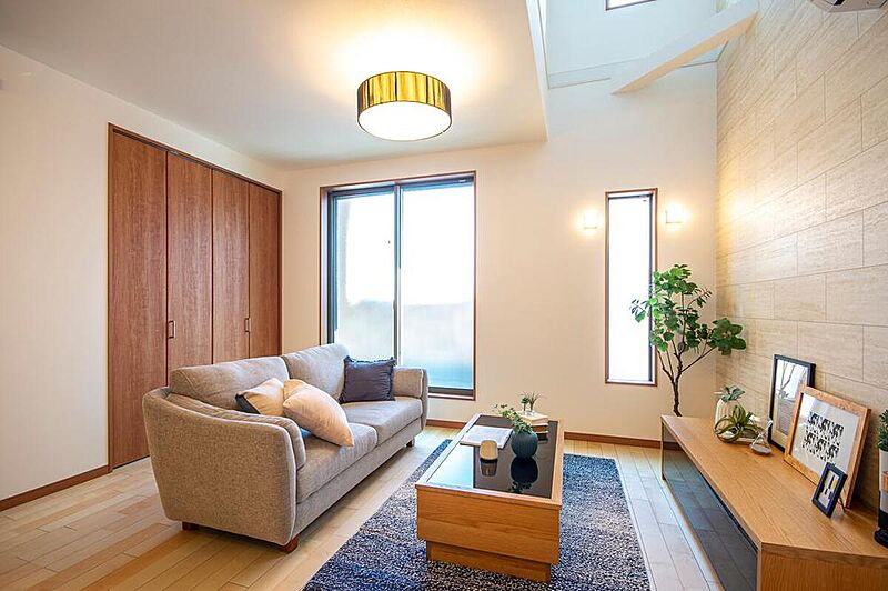 折り上げ天井とダウンライトの組み合わせが奥行きと立体感を与え、より開放感あふれる空間に仕上げています。《建物面積114.20m2、建物価格1951万円》