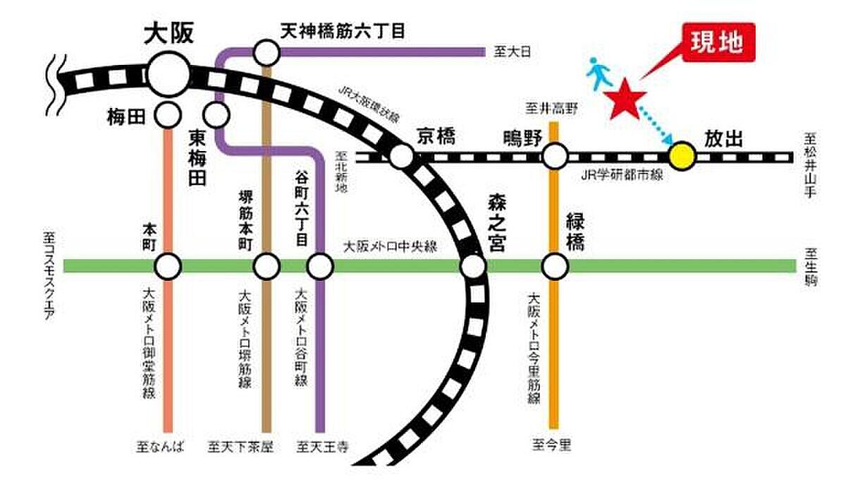 JR大阪環状線「京橋」駅 徒歩7分 Osaka Metro谷町線「天満橋」駅 バス7分「朝日橋」停留所 徒歩4分 Osaka Metro谷町線「南森町」駅 バス10分「蒲生三丁目」停留所 徒歩8分 |