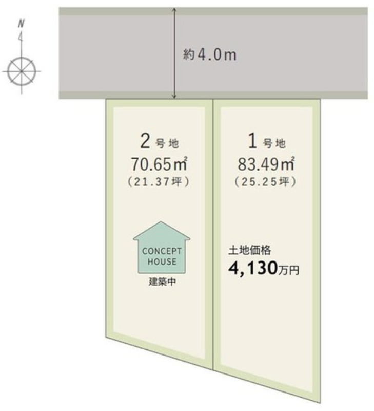 | 駐車場 | - | 道路の幅員 | 幅員:北側約4.0m、私道負担:有 【1号地】セットバック部分約6.48m2(セットバック済) |