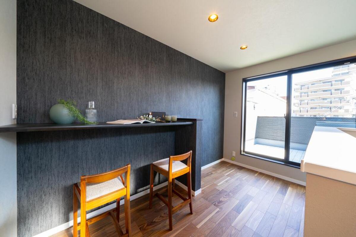 リビングから続く和室は落ち着いたトーンでシックな印象に。LDK...