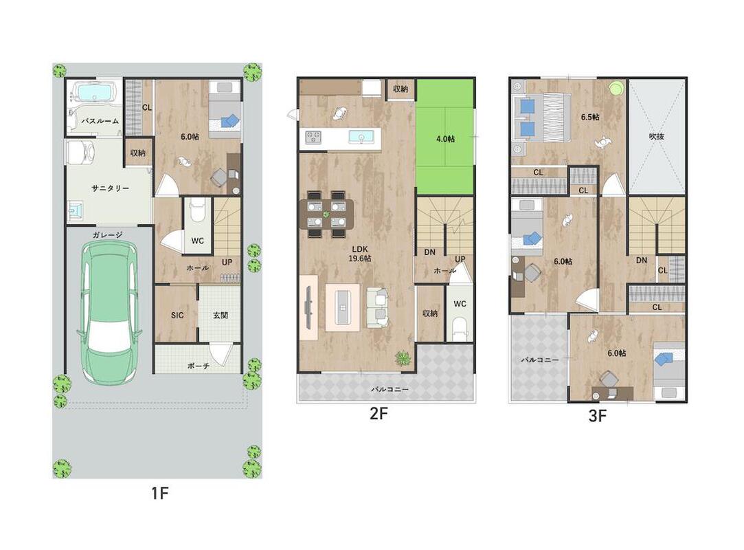 - ※完成予想図やCG合成画像は、門塀・植栽・庭・外観等、実際とは多少異なる場合があります。