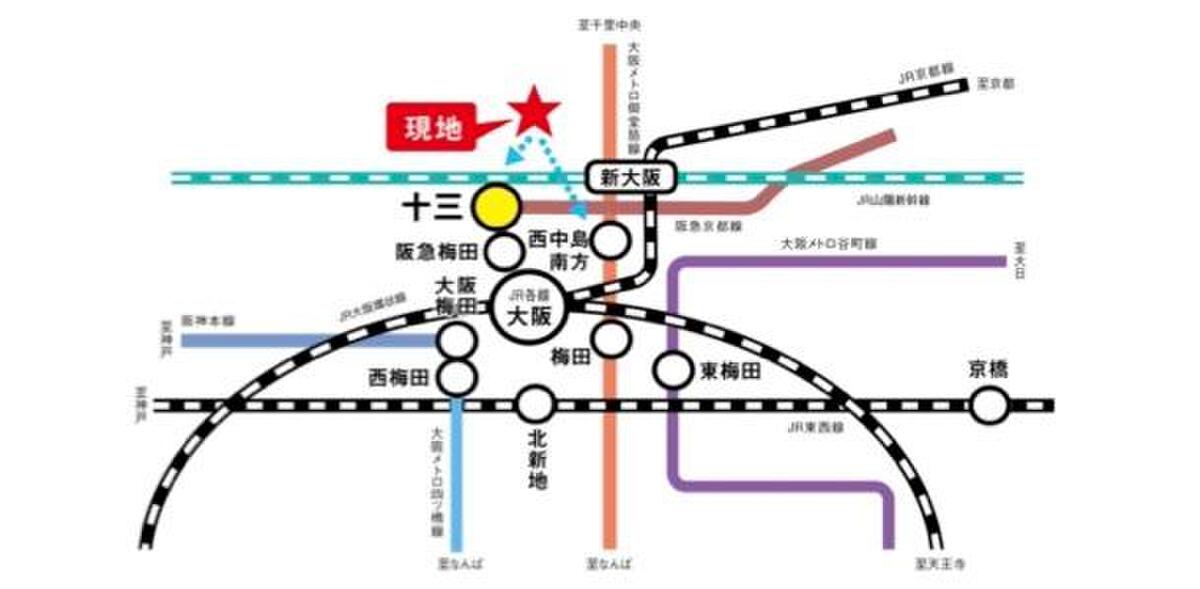 阪急神戸本線「十三」駅 徒歩11分 Osaka Metro御堂筋線「西中島南方」駅 徒歩17分 Osaka Metro御堂筋線「梅田」駅 バス13分「木川西二丁目」停 徒歩9分 |