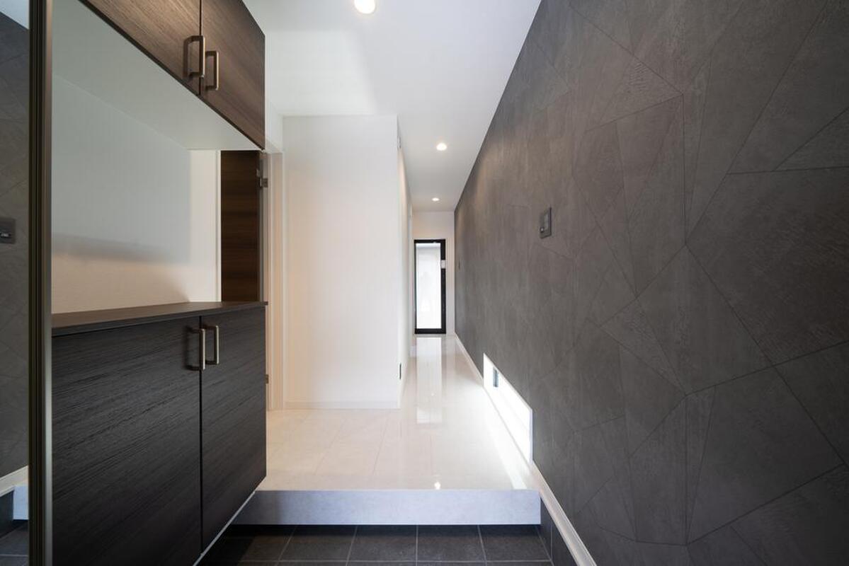 タイル調の床がホテルライクな上質さを感じさせる玄関。足元のFI...