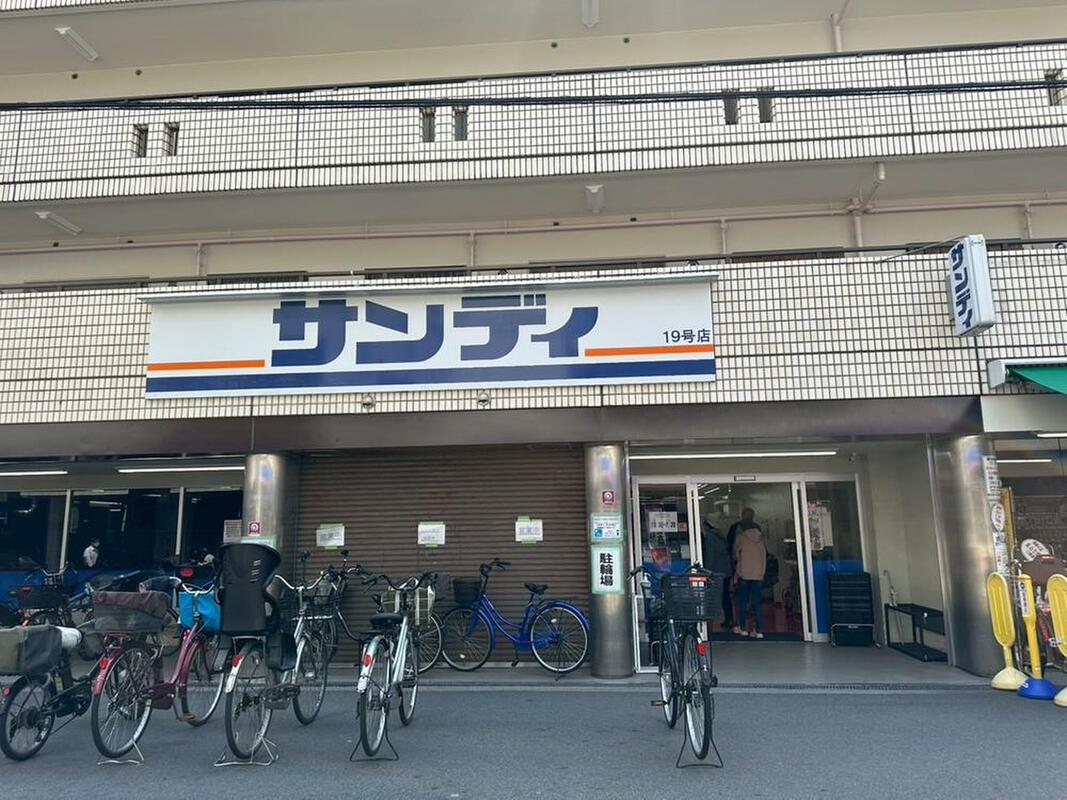 3.【サンディ 十三店】徒歩4分(約270m)。店舗HPでは特売情報が掲載されたデジタルチラシを閲覧できます。支払いには、各種キャッシュレス決済が利用可能です。/営業時間 10:00~19:30