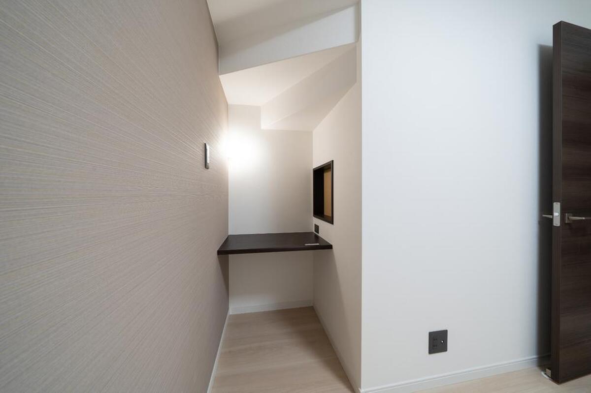 1階洋室には、ニッチや照明付きのカウンタースペースを設けており...
