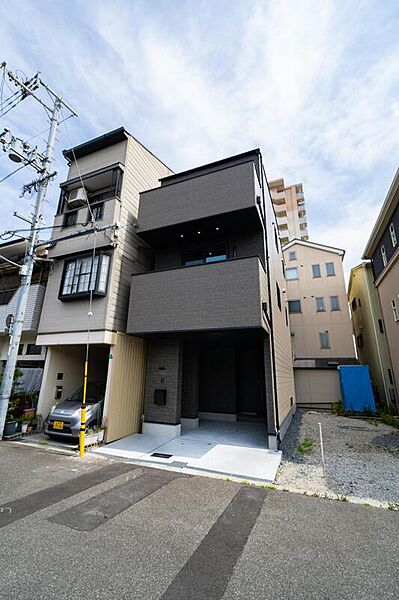 1.エレガントな雰囲気漂うホテルライクな家。ダークカラーの外壁を採用し、落ち着いた表情の邸宅です。《分譲地外:建物面積89.10m2、建物価格1662万円》