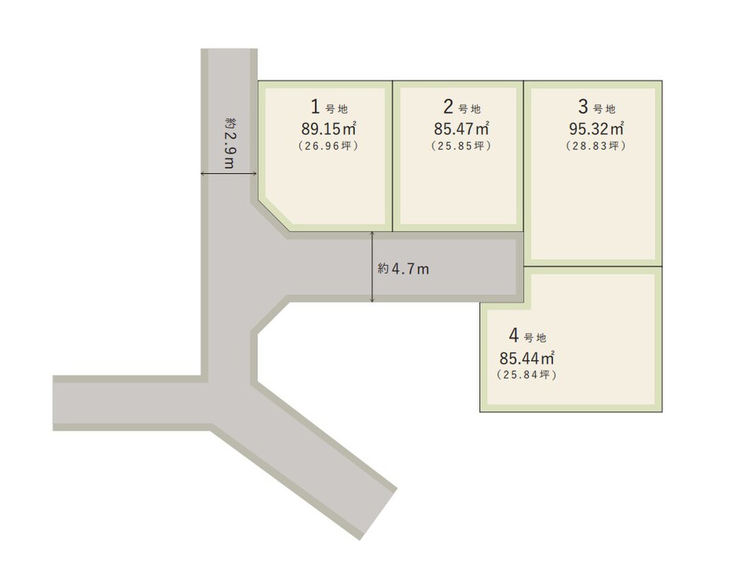 | 建物面積 | - | 土地面積 | 85.45m2~94.07m2(約25.84坪~約28.45坪) |