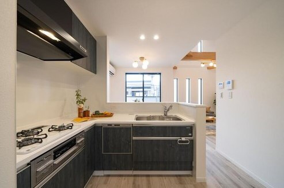 作業動線がコンパクトで、家事が捗るL字型キッチンを採用。腰壁部...