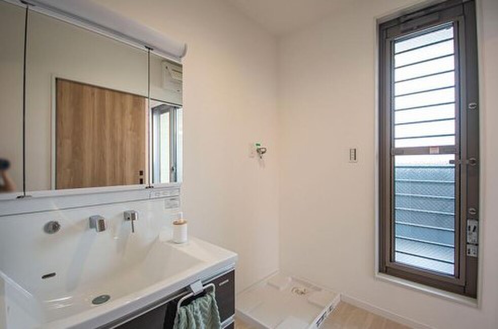 洗面室とバルコニーを繋ぐ動線を計画し、洗濯の手間を軽減しました...