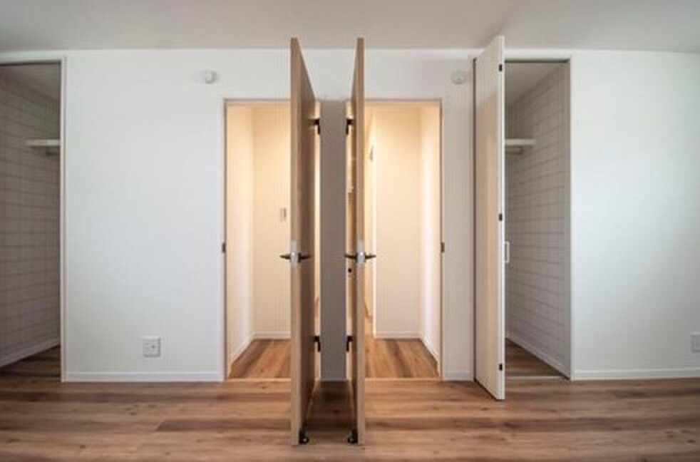 家族のライフスタイルに合わせ、将来的に部屋を分割できる「将来間仕切り仕様」の洋室です。《分譲地外:建物面積103.07m2、建物価格1851万円》