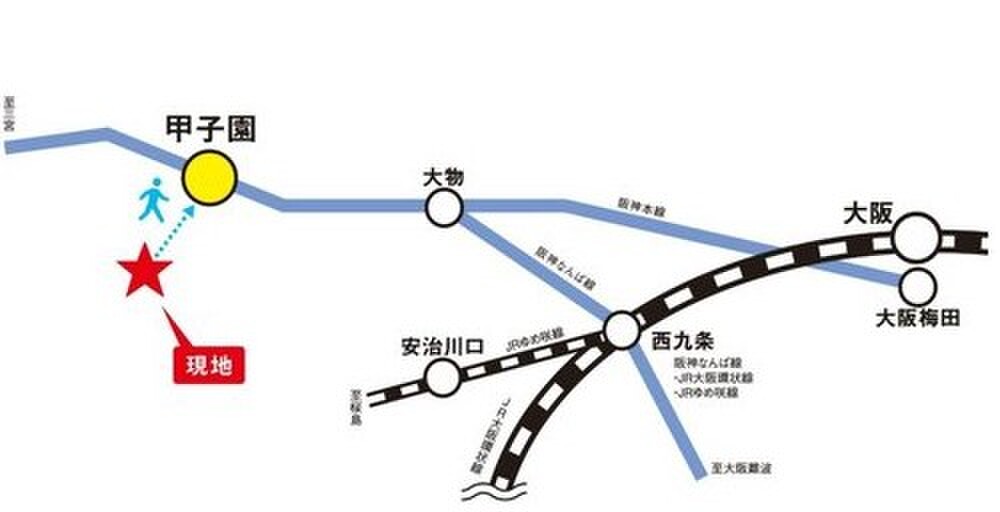 - 阪神本線「甲子園」駅 徒歩13分阪神本線「鳴尾・武庫川女子大前」駅 車で約1.4kmJR東海道・山陽本線「甲子園口」駅 バス12分「甲子園口」バス停 徒歩2分