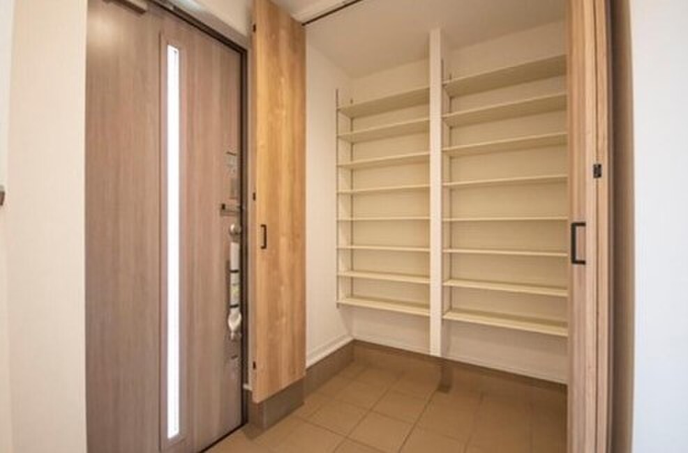 玄関に設えた大容量のシューズインクローゼットは、お子様のおもち...