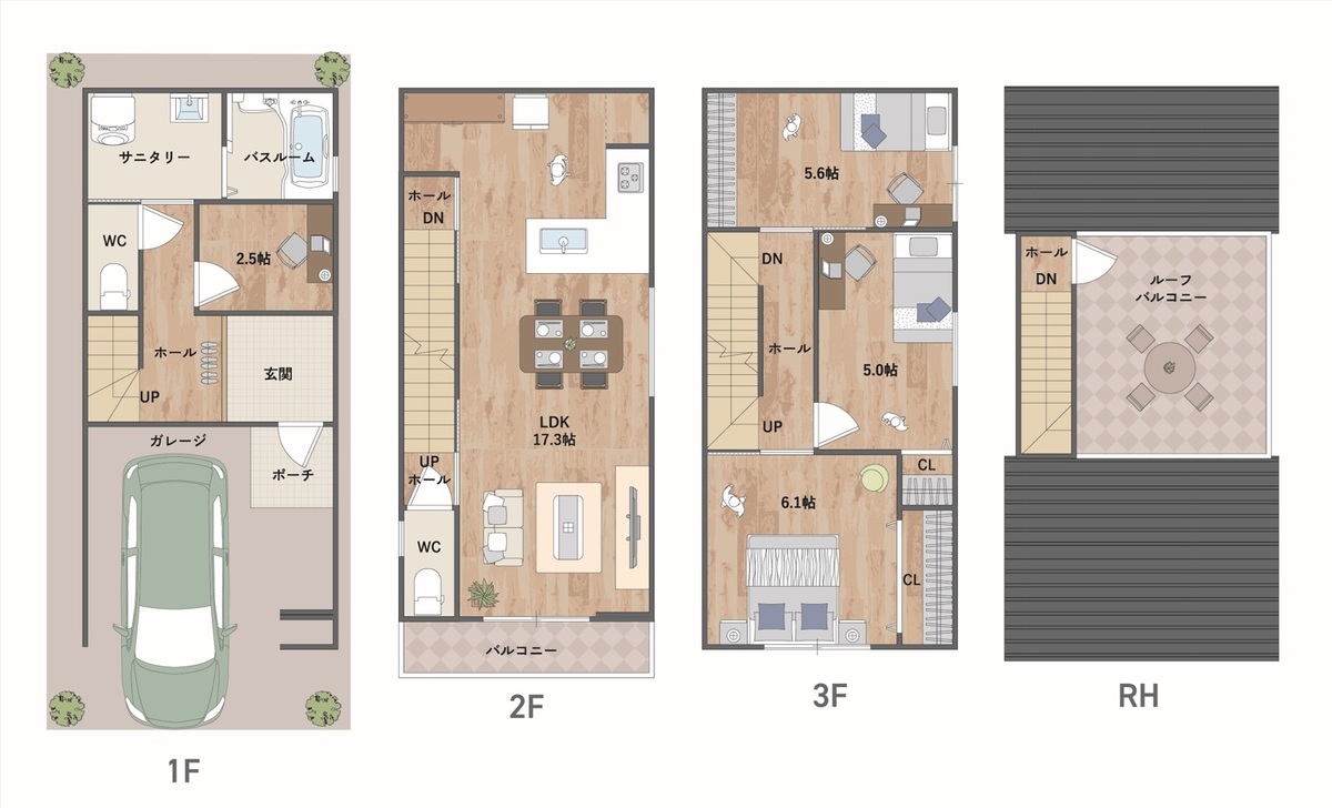 - ※完成予想図やCG合成画像は、門塀・植栽・庭・外観等、実際とは多少異なる場合があります。