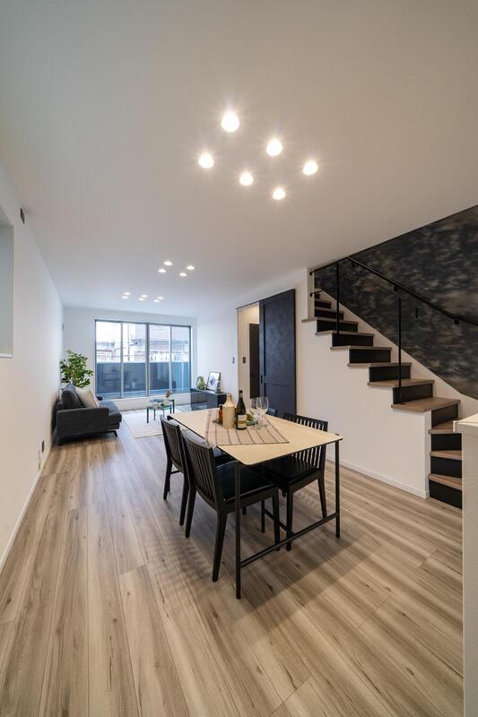 LDKから3階へ上がる階段はオープンなひな段階段仕様です。LD...
