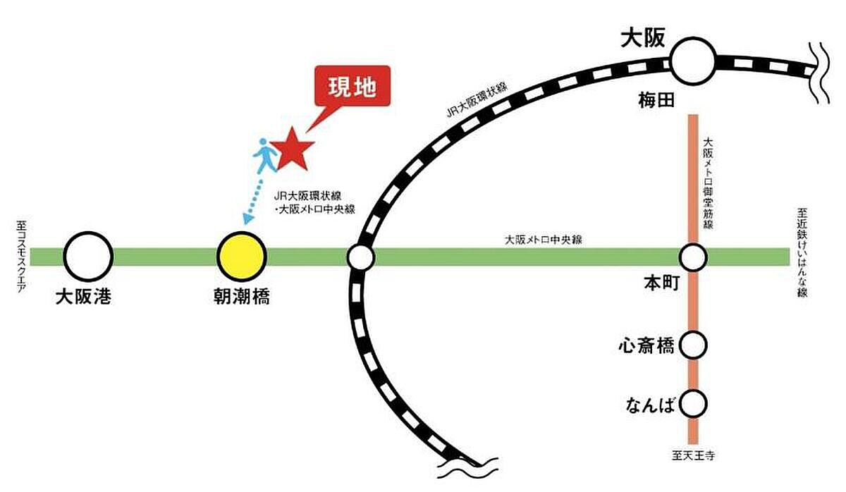 Osaka Metro中央線「朝潮橋」駅 徒歩4分 JR大阪環状線「弁天町」駅 徒歩17分 Osaka Metro中央線「弁天町」駅 徒歩20分 |