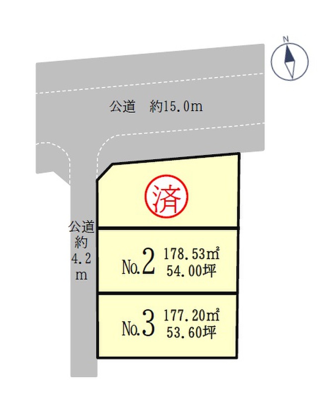 | 駐車場 | - | 道路の幅員 | 西側 公道約4.2m、北側 公道約15.0m(歩道含む) |