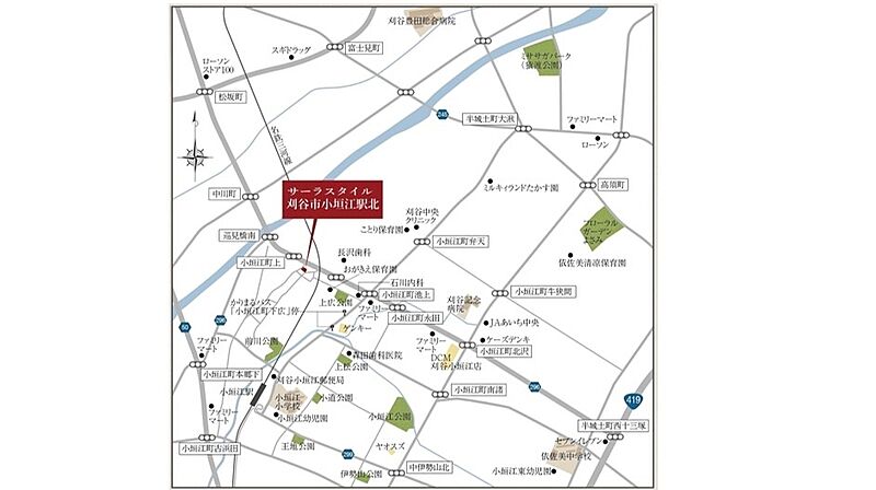 - ※物件から周辺のお店・施設までの距離は、利用が想定される道路を通行した場合の距離です。なお、必ずしも最短距離を保証するものではありません。