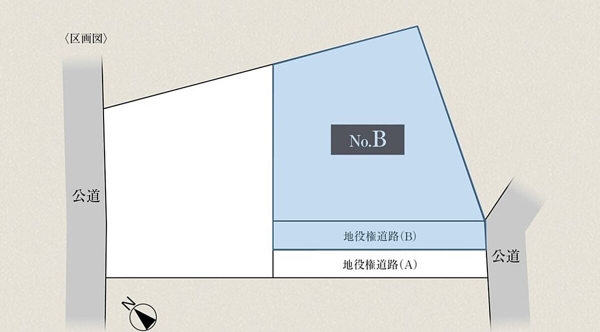 | 建物面積 | - | 土地面積 | 196.54m2~196.90m2(通行地役権の共有道路部分A区画:31.35m2、B区画:31.12m2含む) |