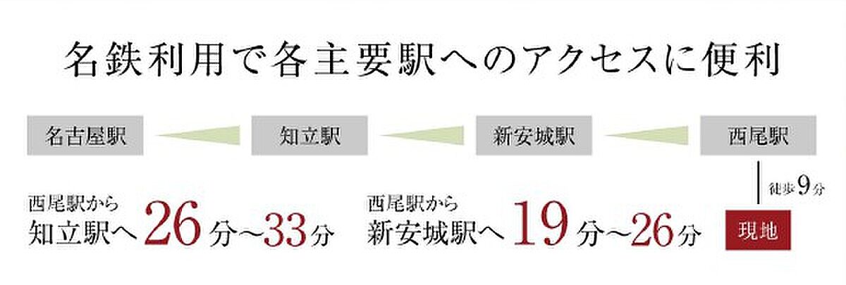 名鉄西尾線「西尾」駅まで徒歩9分。名古屋駅、知立駅など主要駅へのアクセス良好で通勤・通学に便利!