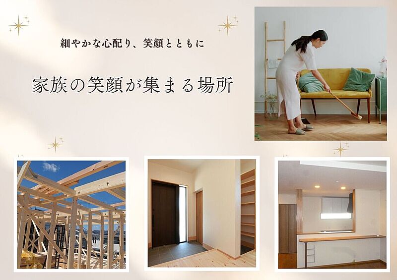 小学校も近くお子様の通学も安心。病院も近くにあり、家族の「もしも」の時も安心です。在来工法による自由設計で、広いリビングなど家族のこだわりを詰め込んだ理想の住まいを形にできます。