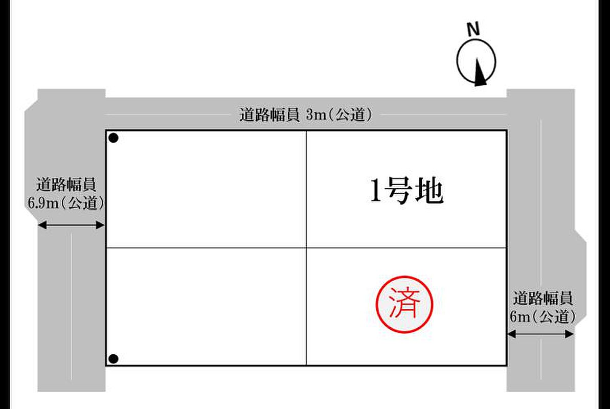 | 駐車場 | - | 道路の幅員 | 道路幅:3m~6m/道路幅の備考:東:6.0m(アスファルト舗装敷)、北:3m(コンクリート舗装敷) |