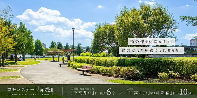 徒歩6分の京王線・東急世田谷線「下高井戸」駅から「新宿」駅へ直通10分。都心へスムーズにつながるアクセス環境が魅力です。通勤も休日のお出かけもスマートに、ゆとりある暮らしを叶えます。