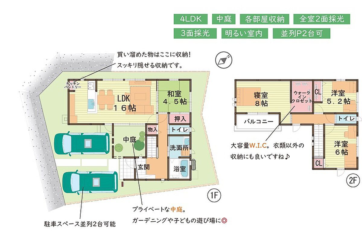 - ※完成予想図やCG合成画像は、門塀・植栽・庭・外観等、実際とは多少異なる場合があります。