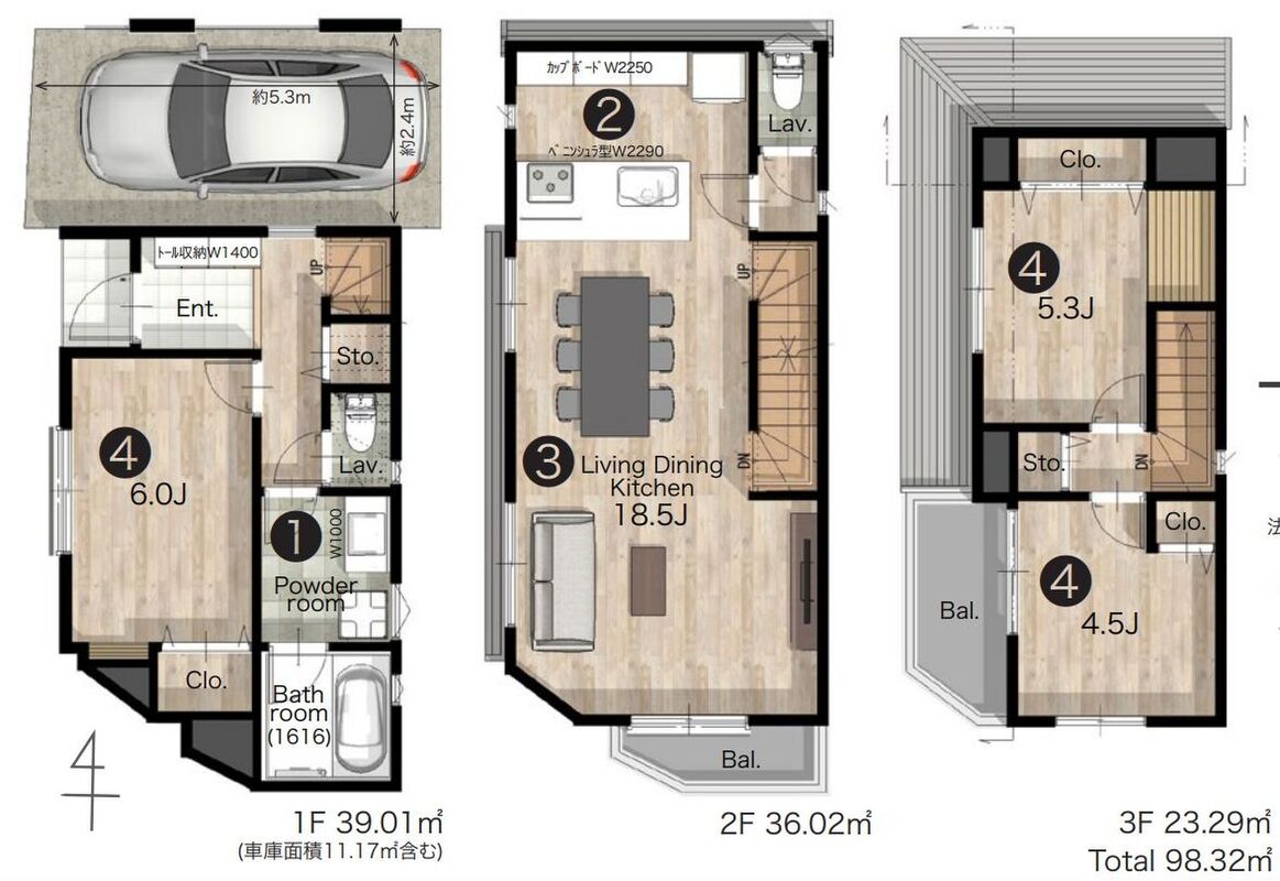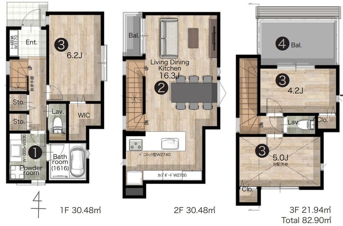 - ※完成予想図やCG合成画像は、門塀・植栽・庭・外観等、実際とは多少異なる場合があります。