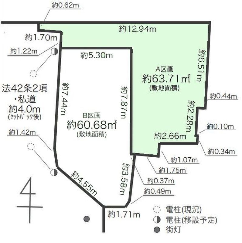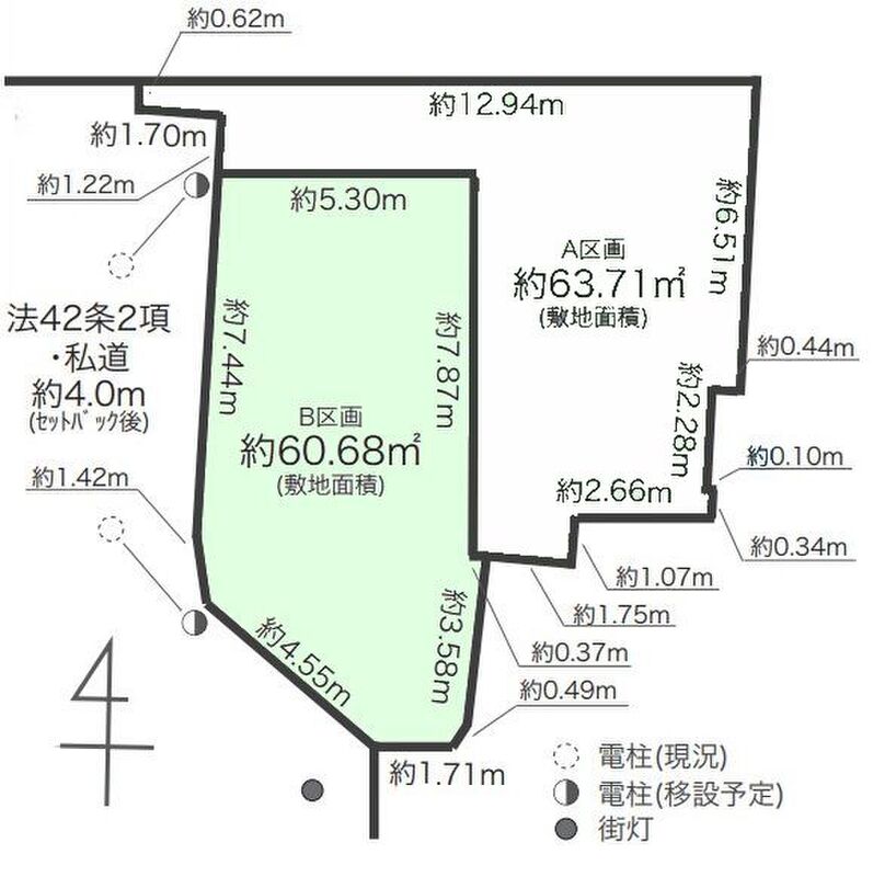 | 建物面積 | - | 土地面積 | A区画63.71m2・B区画60.68m2 |
