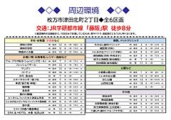 - JR片町線(学研都市線)「藤阪」駅 徒歩8分JR片町線(学研都市線)「津田」駅 徒歩24分JR片町線(学研都市線)「長尾」駅 徒歩33分