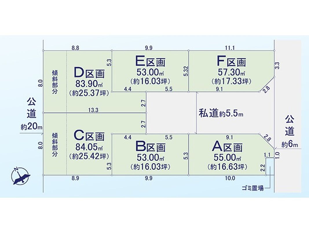 | 駐車場 | - | 道路の幅員 | 東側約6.0m公道、区画内約5.5m |