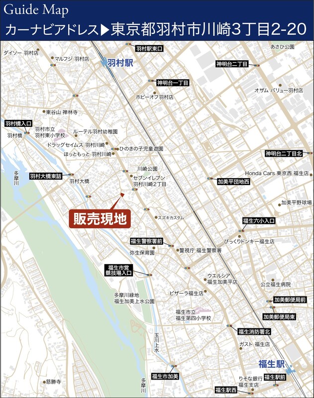 JR青梅線「羽村」駅 徒歩15分~16分 JR青梅線「福生」駅 徒歩20分~21分 |