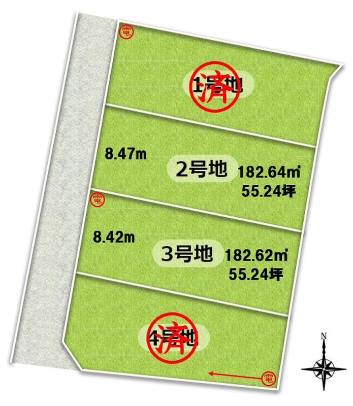 土地 桜井市分譲地・全4区画・土地55坪・駐車場3台可