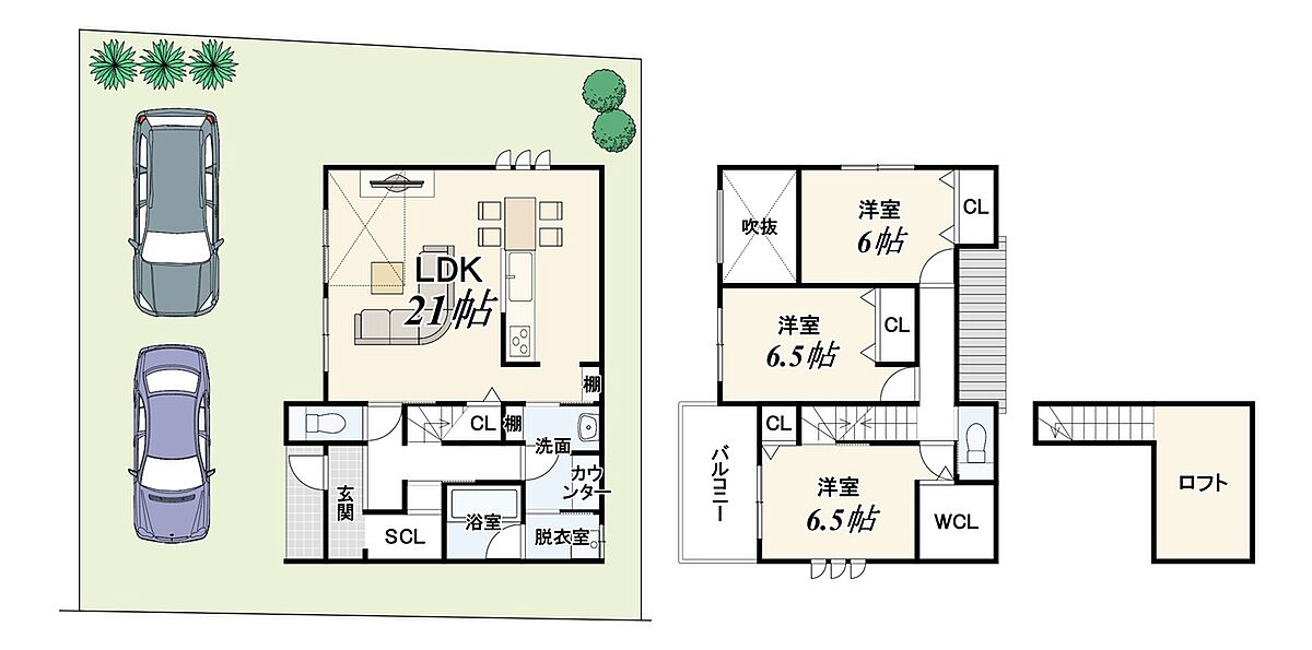 - ※完成予想図やCG合成画像は、門塀・植栽・庭・外観等、実際とは多少異なる場合があります。